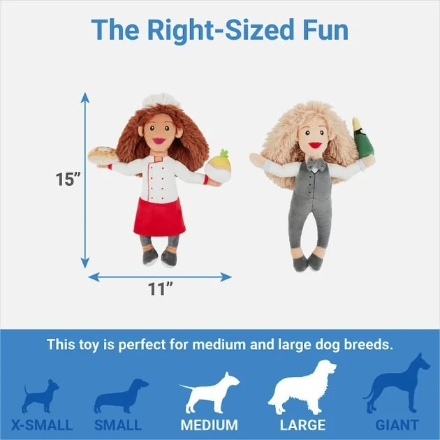 - Chef and waitress toys include four sewn-in squeakers that for sure will make your dog’s tail wag with joy.