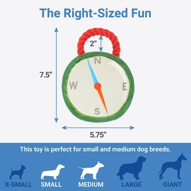 Frisco Camping Compass Plush with Rope Squeaky Dog Toy