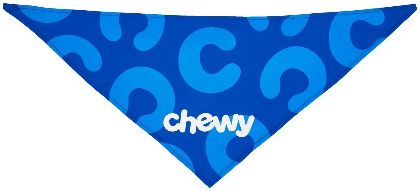 Remember to measure your pet for the paw-fect fit. Yup, we know your pet is team Chewy—and now you can have the swag to prove it! This bandana is the perfect fashion accessory to level up that cuteness factor, as if your dog or kitty needed it. Made with a lightweight material, it’s comfy to wear and easy to put on. Just tie it loosely around your pal’s neck and you’re ready to rock the look. Turns out, your pet looks great in Chewy blue!