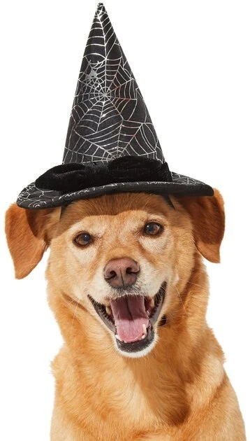If you’re brewing up a fun potion this Halloween, this costume hat is the perfect addition to your pet’s spooky season wardrobe. Designed for cats and dogs, it makes a great costume on its own for pets who like to keep it simple, and it can be paired with a separate witch costume from Frisco to put the spirit of spookiness over the top. It looks just like a real witch hat, with a cobweb print and a black velvet bow. To put it on, just fit it over the head and adjust the strap for their comfort. Whether you’re throwing a Halloween party, dressing up for a photo op or just feeling the spirit of the season on Halloween night, this hat is perfect for your pet.