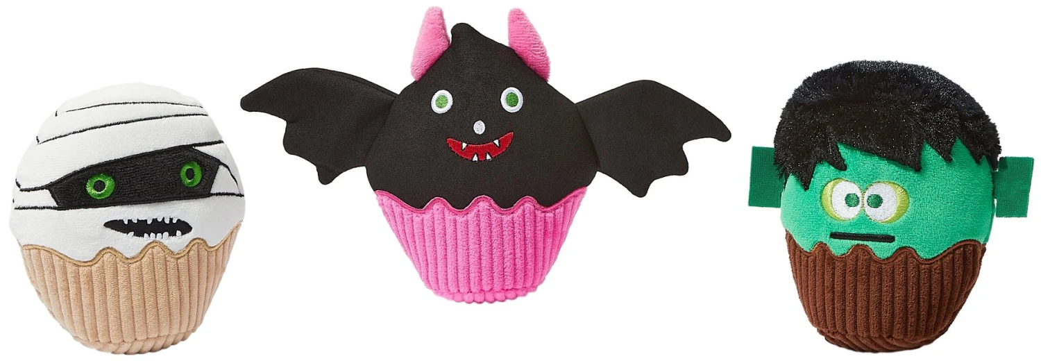 - Three-pack of Halloween cupcake toys with mummy, bat and Frankenstein’s monster themes.