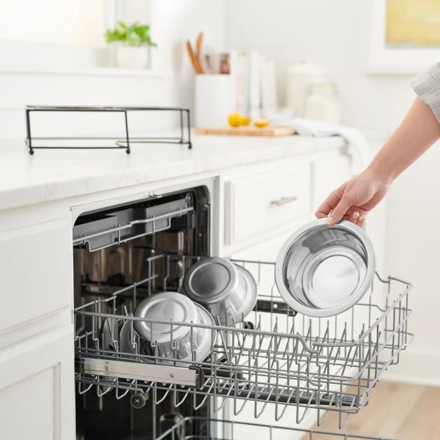 - Care instructions: Removable stainless-steel bowls are hand washable and dishwasher safe.
