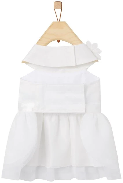 Get your fur friend wedding aisle ready with the Frisco Formal Dog Wedding Dress. It features a satin upper body and layers of tulle for a touch of elegance. Lace flower embellishments with faux pearl beading and a satin bow add beautiful details to this formal wear. It’s easy to get your pet dressed with the hook and loop fasteners. Guests will be turning their heads to get a good look at your fancy fur friend.