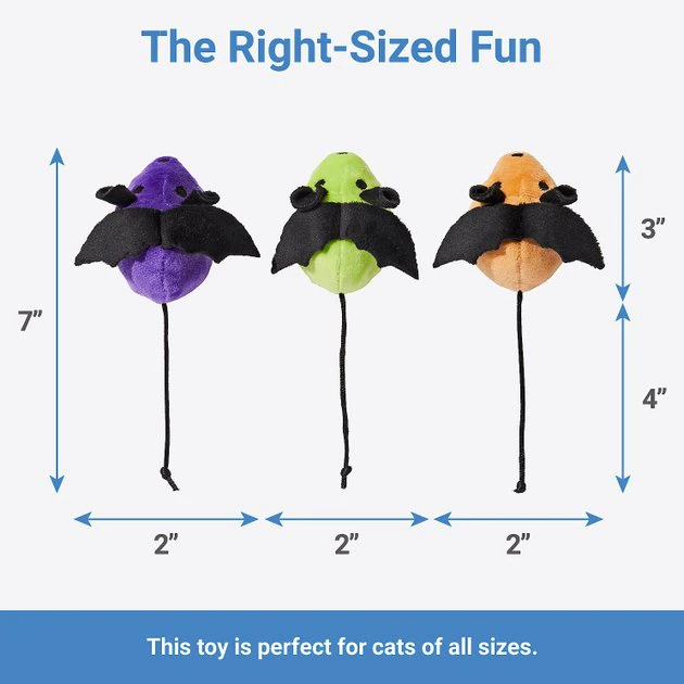 Frisco Halloween Bat Mice Plush Cat Toy with Catnip, 5 count