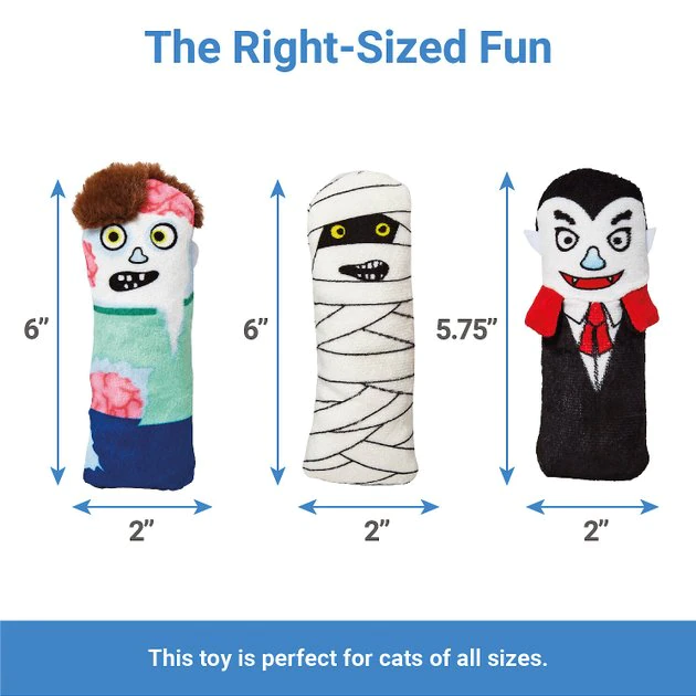 They’re aliiive and ready for a fun time! The Frisco Undead Friends Kicker Cat Toy, 3-Count is the perfect way to add a little paranormal activity into playtime. Each toy features catnip your kitty will go crazy for, plus crinkle paper for extra spooky stimulation.