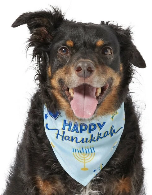 - Celebrate the holidays with this festive “Happy Hanukkah” bandana design.