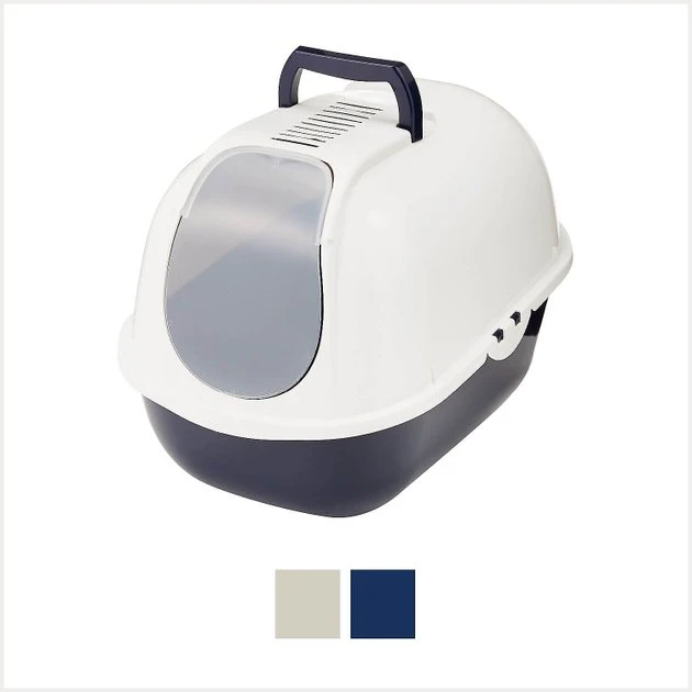 - The Frisco Hooded Cat Litter Box is BPA-free and recyclable—perfect for eco-minded pet parents. Choose from navy or warm gray colors.