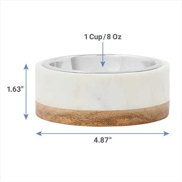 - Handcrafted marble with a removable stainless-steel bowl adds a stylish touch to dinnertime.