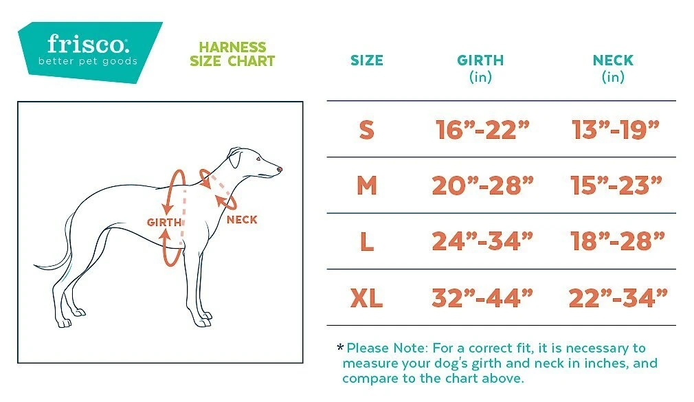 To get the most accurate size harness for your furry best friend, measure the girth of their chest, just behind the front legs, with a cloth tape measure. Pull the tape snug, but not tight. If youdon’thave a tape measure, you can also use a piece of string and measure it with a rigid ruler afterwards. Make sure_there’s_enough room for about two fingers between the harness and your pup’s chest.