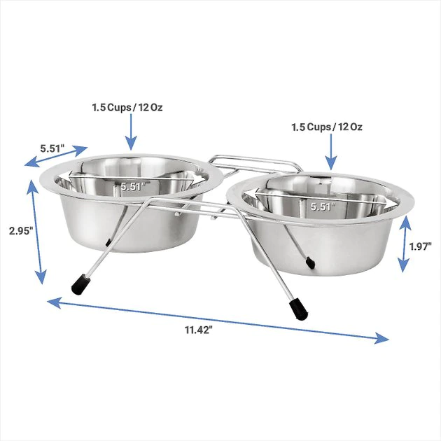 - Sturdy base with non-skid rubber feet ensures a secure grip that prevents sliding and spills while your pet eats and drinks.
