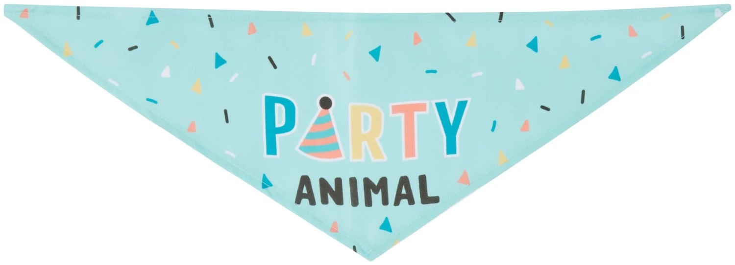 - Doggy bandana comes in a blue base and reads “Party Animal,” so everyone will know who the life of the party is.