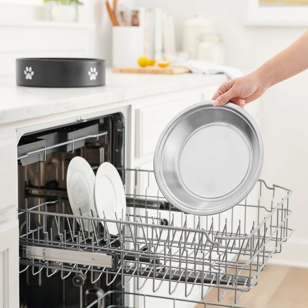 Elevate your pet’s dining experience. This bowl has a raised design so your pup and kitty can eat and drink from new heights. Made of durable stainless steel, it’s the perfect bowl for everyday use. It has a shallow and wide design that’s easy for your pet to access. The bowl sits on a rubber ring for quiet eating and drinking, and the base is nonskid so the bowl stays in place. A paw print adds just the touch of style you need. Hand wash it or toss it in the dishwasher for easy cleaning.