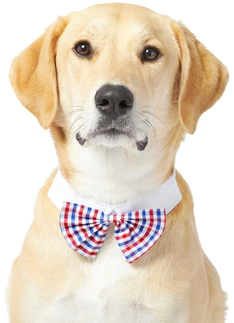 Get your pup or kitty ready to make a fashion statement with the Frisco Plaid Dog & Cat Bow Tie. It goes on with a hook-and-loop fastener around your pal’s neck for that polished look, plus the red and blue plaid pattern gives your pet adorable dapper vibes. The white collar makes it look so realistic, too. It also comes in two sizes with a wide fastener so you can adjust it for the right fit.