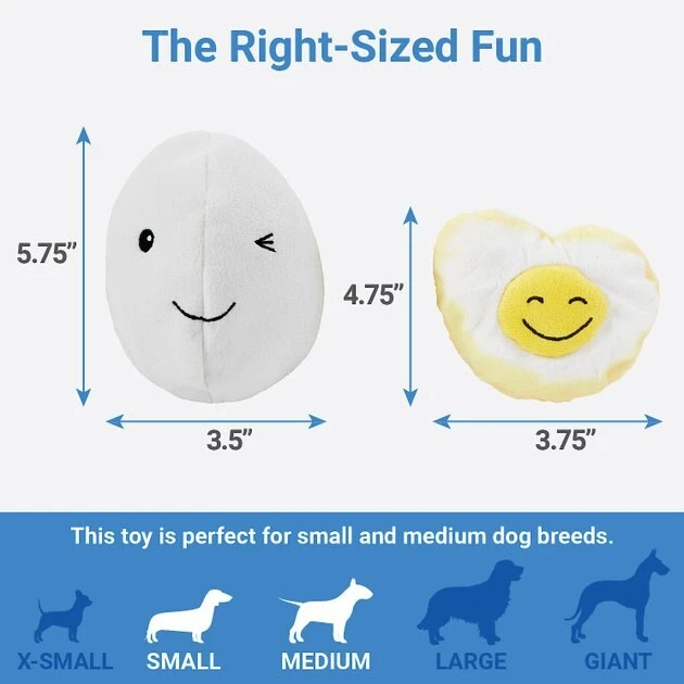- Super cute two-in-one design includes a plush shell outside and a squeaky egg toy inside.