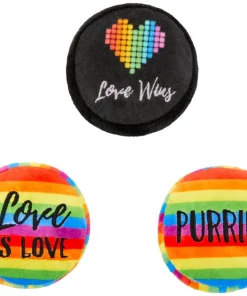 - Plush button set features three different toys, each with a different Pride message for your kitty.