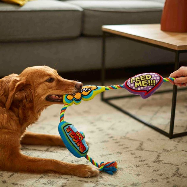 This toy gives your dog the best of a rope toy and a plush toy with the classic look of a comic book! If you’ve got a furry fan at home who needs to add to their retro collection, this rope toy with three individual plush toys attached is perfect. It’s great for interactive games that help you bond, and it’s easy on your dog’s teeth and gums while they’re in playmode. Feel the flashback nostalgia with Frisco!