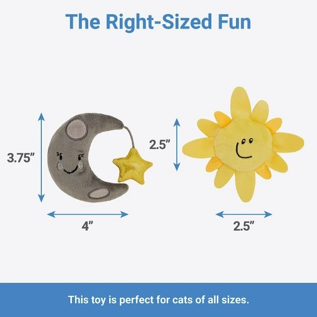 - Comes in a two-pack with a sun and moon design for cats to enjoy.