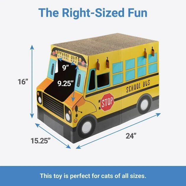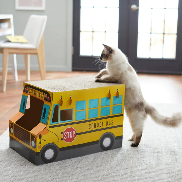 It’s your kitty’s first day of school, so don’t let them miss the bus. Pickup is wherever your kitty likes! This school bus is made with corrugated cardboard, the best material on Earth for cats, according to cats. That means kitty can scratch happy on their way to school. Complete with little windows for kitty to peek out from, it’s the perfect play and nap spot on wheels, all in one.