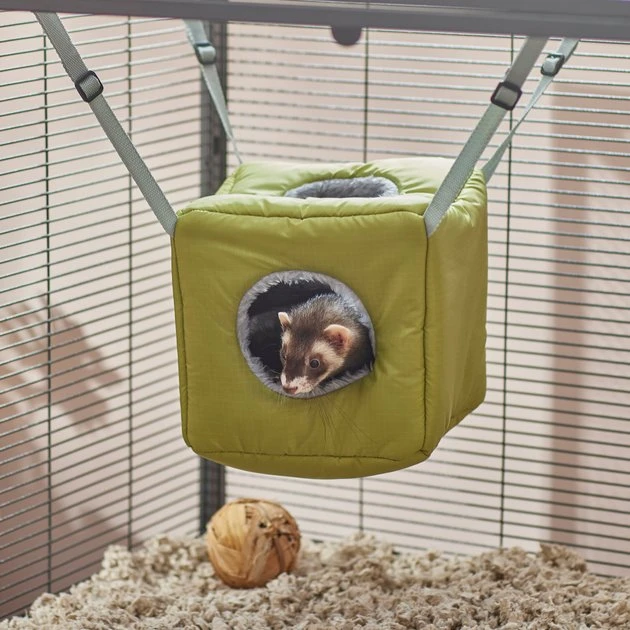 Give your small pet the perfect place to hang. It’s a house. It’s a bed. It even defies gravity! Well, sort of. Hang this cube bed up in any wire cage with the adjustable straps and easy clips to level up the cozy factor for your furry one. Critter comforts include a plush interior for comfy sleeping and lounging, and multiple holes to get in and out and tunnel around all day. This is sure to be the comfiest small pet bed on the block.