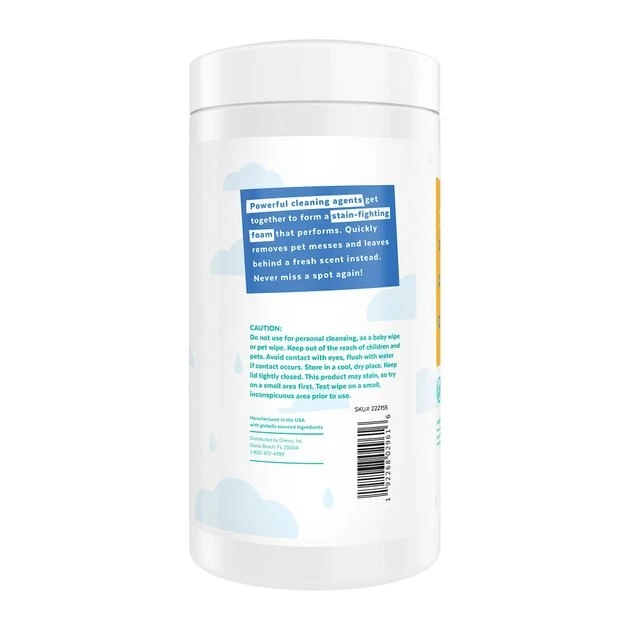 Frisco marks the spot with the Frisco Carpet Spot Clean Wipes! This top-quality spot cleaner creates a light foaming action to target and remove messes and stains fast. If a spot disappears from a carpet, did it ever really happen? Keep these affordable and durable wipes handy to keep your carpets looking great, from muddy paws to spills and everything in between. Frisco by Chewy has you covered with all the essentials for a happy pet, from poop bags to litter, apparel, toys, beds, dinnerware, leashes and collars and lots more.