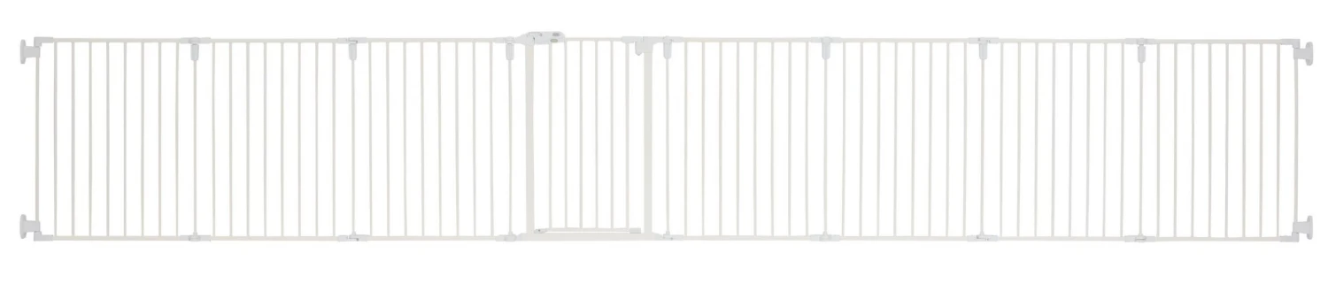 - Each panel has a powder-coated finish and features easy-press buttons that allow you to quickly remove panels and tailor the gate to your needs.