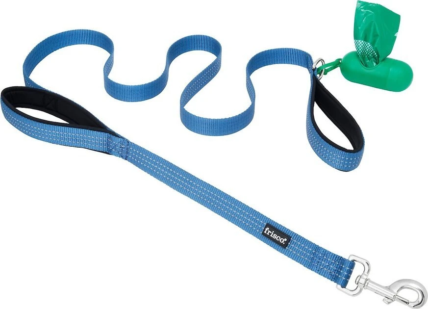 Frisco Traffic Leash with Padded Handles & Poop Bag Dispenser, Blue, Length: 6ft, Width: 1-in + Refill Dog Poop Bags, Scented, 120 count