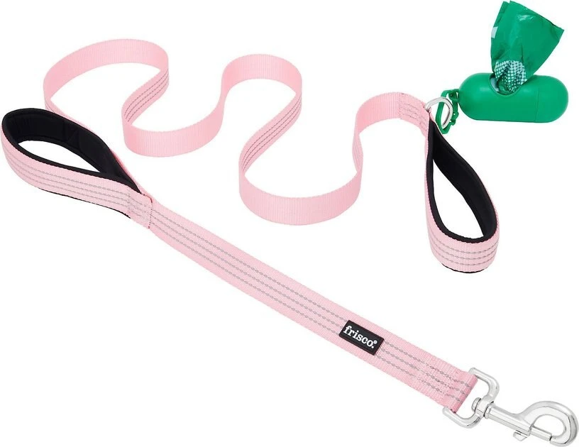 Frisco Traffic Leash with Padded Handles & Poop Bag Dispenser, Pink, Length: 6ft, Width: 1-in + Refill Dog Poop Bags, Scented, 120 count