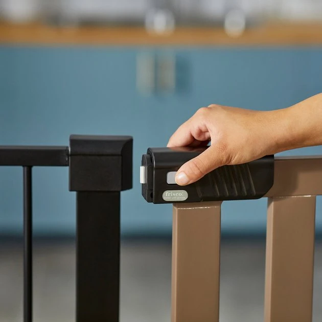 Set aside some space in your home just for your pet with the Frisco Wood & Metal Extra Tall Auto-Close Pet Gate. The extra-tall design makes this gate ideal for keeping larger pets or pets with lots of hops in their safe spot in your home. It’s made from steel with wood accents, so it’s lightweight, durable and it looks great in your home, too. The double-lock safety release makes sure the door stays securely locked when it needs to be, and the auto-close feature adds another layer of security and convenience. If you leave it open more than 90 degrees, the door will stay open—if you leave it open less than 90 degrees, it will automatically shut behind you. Plus, assembly is a breeze. All you need is a screwdriver or drill and a pencil, and the pressure mount system makes setup and takedown quick and simple.