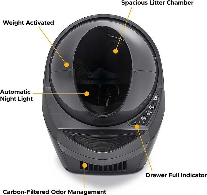 - Features an enclosed and carbon-filtered waste drawer to reduce unpleasant odors.